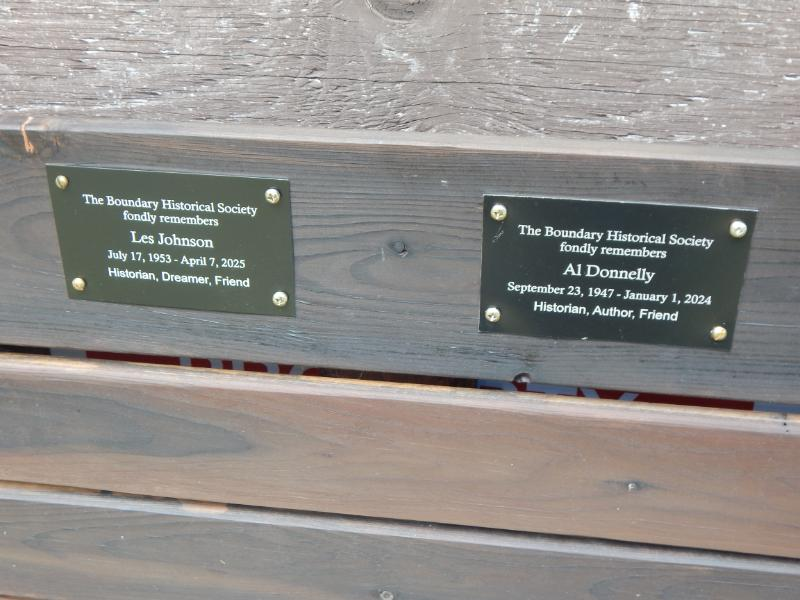 I realized that last newsletter I forgot to include a picture of Les and Al’s bench. So here it is.