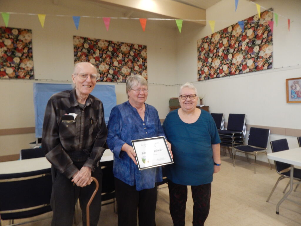 Our AGM was prefaced with refreshments and coffee. Deb and John Billwiller had to leave early to meet a plane, so we moved the presentation of their Life Member Award forward to accommodate their schedule. Mickey Keller-Nadon presented them with a certificate. John and Deb were instrumental in keeping the Boundary Historical Society together and are always stalwart supporters. Deb has been a mentor to me and John has always been there for us.